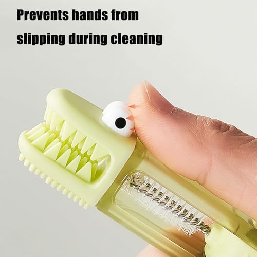 Unique Crocodile Head Design: Curved brush head with 360° flexible neck cleans in baby bottles, water bottle lids, and straws. The eyes design of this crocodile brush allows for a firm grip during cleaning and prevents your hand from slipping