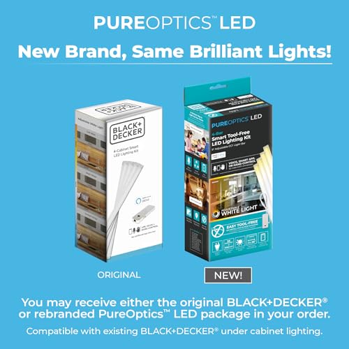 BLACK+DECKER Compatible with Alexa Smart LED Under Cabinet Lighting Kit, Motion Sensor, Dimmable , 3 Color Settings, For Kitchen, Cabinets and Closets, (4) 9″ Bars, White, A Device