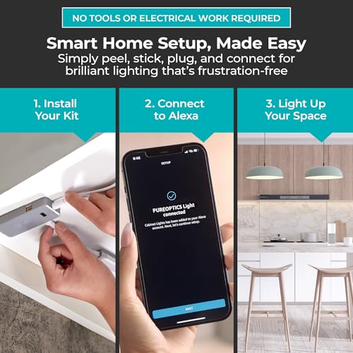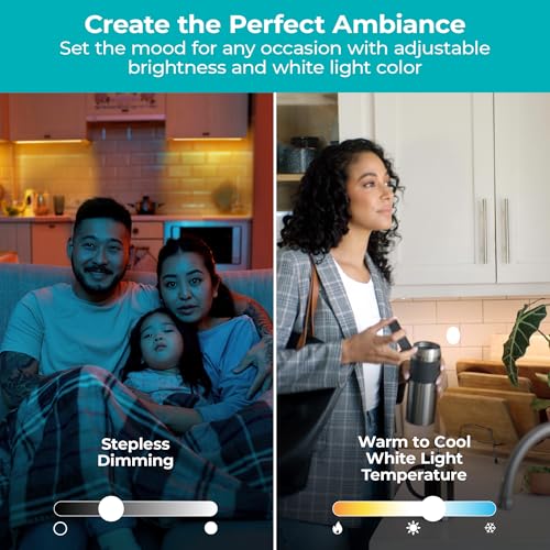 Light up your kitchen with the simple tap of an app or voice command. Create a lighting and ambient experience unlike any other with our under cabinet lighting that’s compatible with Alexa devices; making it a device with no third-party app required. Whether you’re in the living room and want to turn the lights on in your kitchen without getting up from the couch, or you’re on your way home from work and want to walk in to a lit-up house, you can virtually turn your under cabinet lights on from anywhere. Dim the lights or set a routine with the app or voice control without leaving your bed. The best part? You can even pair these lights with other smart devices in your kitchen, closet, garage, workshop or anywhere in your home, for easy lighting control in any area of your house! This 4-pack of 9” ultra-thin light bars illuminate a wide, flicker-free zone that can be changed from full brightness with soft white, white or daylight white to night mode in a matter of seconds. Worried about installation? This voice-activated smart LED lighting solution can be easily installed in a matter of minutes with no stress, no tools and no confusion for frustration-free installation. You can even turn the lights on and off by waving your hand under the motion sensor for touch-free activation that leaves your lights bright and your kitchen clean.