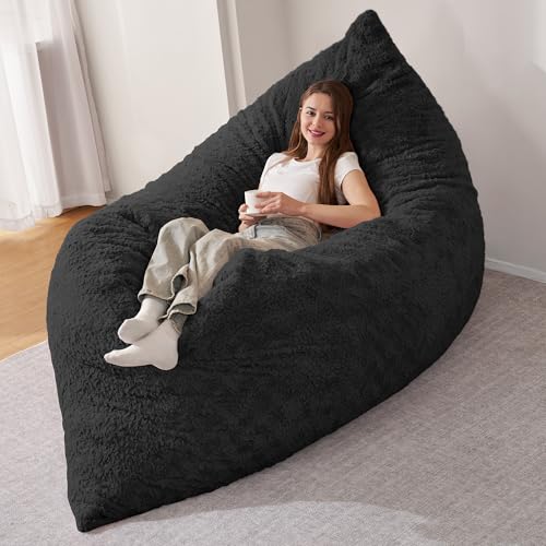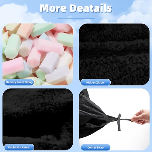 HABUTWAY 4 in 1 Bean Bag Chair, Giant Memory Foam Filling Bean Bag Sofa, Adult Bean Bag Chair, Machine Washable Faux Fur Cover, Bean Bag for Adult (Black)