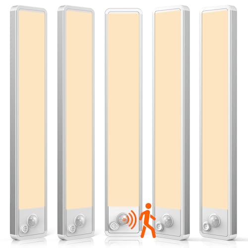 Under Cabinet Lighting Wireless 2200maAh Rechargeable LED Motion Sensor Magnetic Light Indoor Closet Lights for Kitchen, Stairs (Warm White, 10 Inch, 5P-WW)
