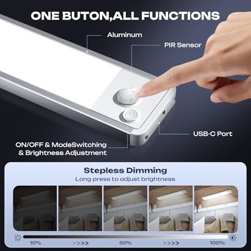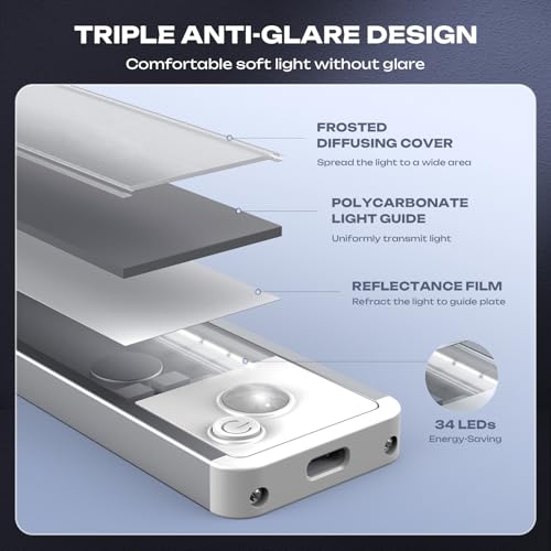 【Super Large Battery Capacity】: Our under cabinet light is equipped with a powerful 2200mAh rechargeable battery,It can work continuously for 8 hours. With USB-C fast charging.