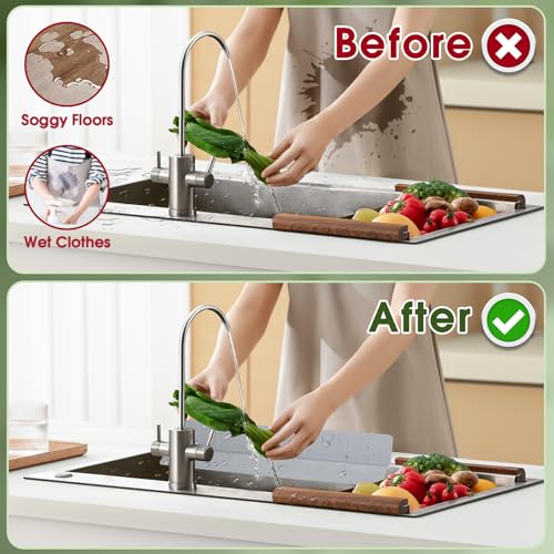 Superior Splash Protection: 23″ wide sink splash guard with a raised, self-draining rim that directs water back into the sink, keeping counters, clothes, and floors dry
