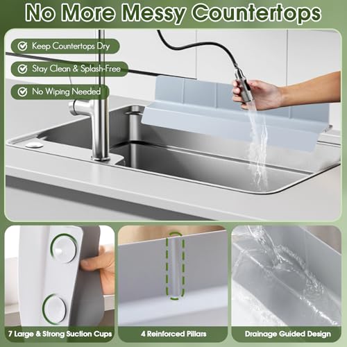 23 inch Kitchen Silicone Sink Splash Guard, No-Slip Water Splash Guard, Dishwasher Safe Splash Protector Water Barrier with Strong Suction for Mess-Free Cooking and Dishwashing