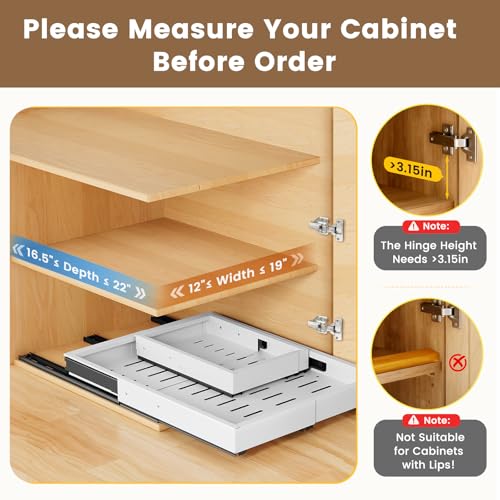 【Important Notes】: To ensure compatibility, please note that this cabinet organizer is suitable for cabinets with a width exceeding 12″ and a depth exceeding 17″. Before purchasing, carefully measure your cabinet’s dimensions. This product is not suitable for framed cabinets.