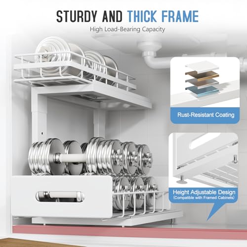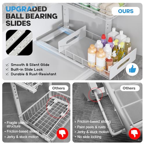 2 Pack Under Sink Organizer with Smooth Ball Bearing Slides,2-Tier Pull Out Cabinet Storage,Slide Out Drawers for Bathroom&Kitchen,Under Sink Shelf,Rust-resistant Coating,Height Adjustable