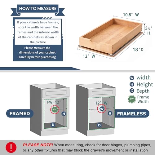 【12 Custom Sizes with Precision Fit】Available in 12/14/16/18/21/23′ Widths x 18/21′ Depths to match standard & custom cabinets. ⚠️Critical: Measure your cabinet’s inner clear width (exclude door hinges) before ordering.
