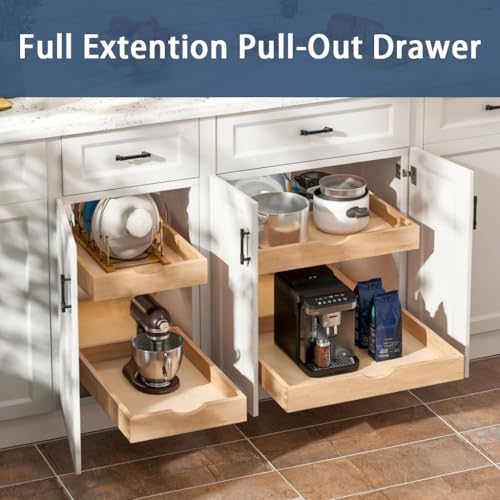 Pull Out Cabinet Drawers – 6×2 Size Options (12-23’W,18-21’D), Pre-Assembled with Soft Close Slides, Solid Beechwood, Easy Installation(12’W x 18’D)