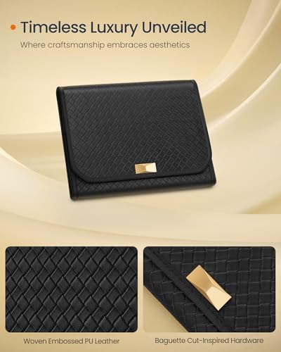 【SHOWCASE YOUR STYLE】Timeless elegance meets modern luxury with this travel jewelry case from SONGMICS HOME RONNE Collection. Boasting woven embossed PU leather accented with baguette cut-inspired hardware, it’s your style declaration