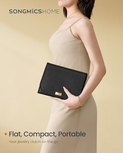 Be the first to review “SONGMICS HOME Travel Jewelry Case, Foldable Jewelry Organizer with Mirror, Sectioned Storage, Large Capacity, Woven Embossed PU Leather, Gift Idea, Ink Black UJBC196B01”