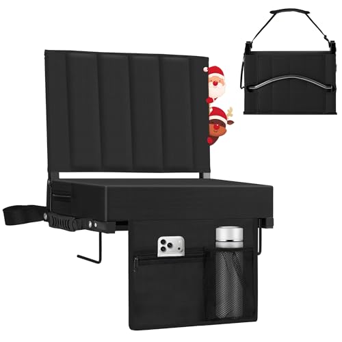Specification: Stadium Seat for Bleachers with Back Support, Portable Bleacher Seat with Wide Comfy Padded Cushion, Metal Hook, Folding Stadium Chair with Shoulder Strap, Carry Handle, Cup Holder