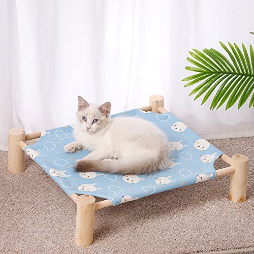 Pozico Cat & Dog Hammock Bed – Wooden Elevated Pet Cot with Breathable Mesh – Raised Cat Bed for Small Pets, Portable Puppy Bed Indoor & Outdoor Use – Blue Rabbit Design