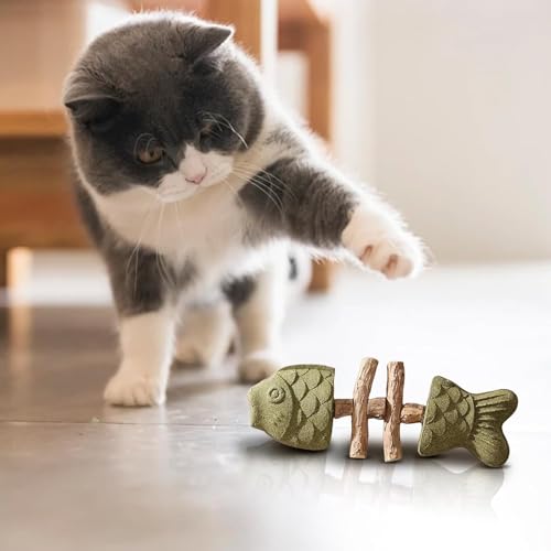 3PCS Cat Dental Health Chew, Natural Fishbone Shape Teething Toy with Catnip, Durable Feline Tooth Care Tool