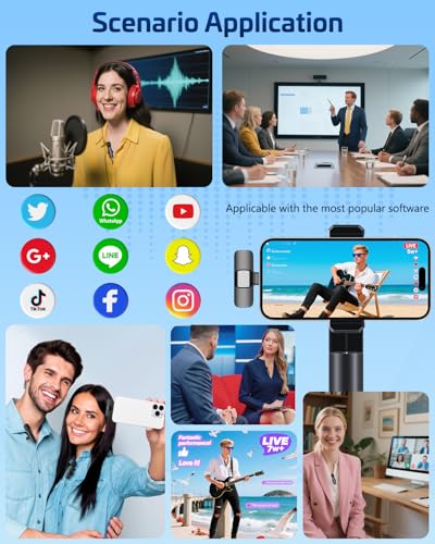 Universal Wireless Mic for All Devices Works seamlessly with iPhone (Lightning or Type-C), Android (Type-C). This tiny wireless microphone comes with all necessary adapters – Just plug and record instantly.