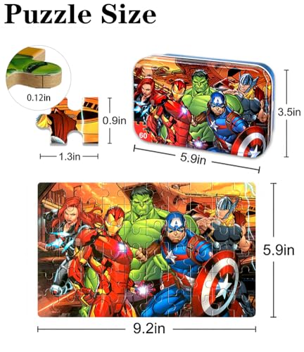 Specification: 60 Piece Educational Puzzles for Kids Ages 4-8 Jigsaw Puzzle Games in Reusable Metal Box, Learning Toys with Extra Thick Safe Pieces for Boys & Girls
