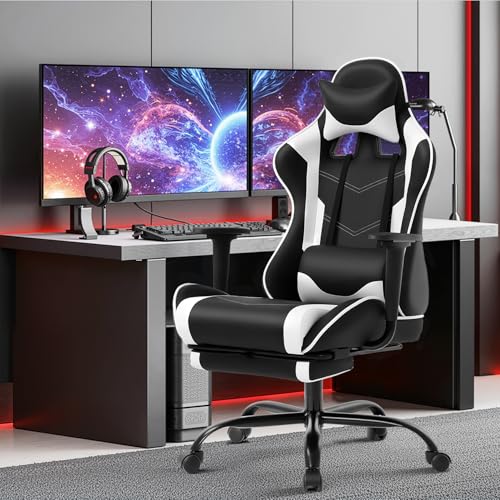 Specification: BestOffice | Ergonomic Gaming Chair | White | Reclining Computer Chair with Lumbar Support, Headrest Pillow, Adjustable Footrests | 360 Swivel with Heavy Duty Wheels | for Home & Office