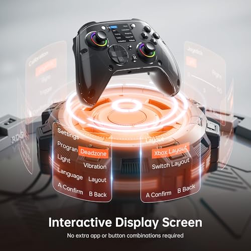 🎮 Interactive Screen & 4 Programmable Back Buttons: Effortlessly configure vibration, turbo, macros, joystick sensitivity, and pairing via the intuitive interactive display, no complex button combos needed! Four programmable back buttons let you assign ultimate skills or shortcuts, ensuring lightning-fast reactions in game.