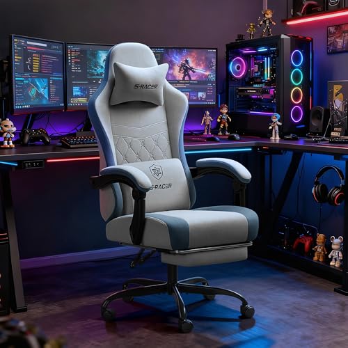 Homall Gaming Chair Video Game Chair with Massage Lumbar Support & Footrest Ergonomic Computer Office Chair with Linkage Armrests and Premium Tech Fabric (Breathable & Skin-Friendly) (Gray)