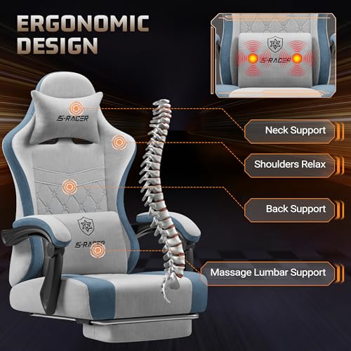 Specification: Homall Gaming Chair Video Game Chair with Massage Lumbar Support & Footrest Ergonomic Computer Office Chair with Linkage Armrests and Premium Tech Fabric (Breathable & Skin-Friendly) (Gray)