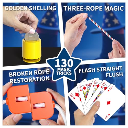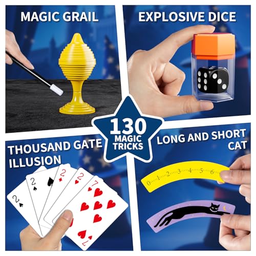Magic Kit for Kids, 130 Magic Tricks Set for Kids with Magic Wand, Manual and Videos, Magic Set Toys Board Game Gifts for 6 7 8 9 10 11 12 Years Old Kid Boys Girls Beginner Christmas Birthday Parties