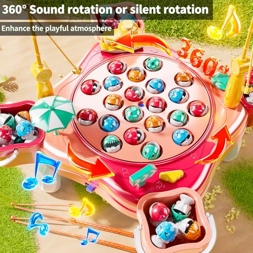 Magnetic Fishing Game Toys, Rotating Board Game with Music Including 48 Fishes and 8 Fishing Poles, Party Game Toys for Kids Age 4 5 6 7 8 and Up