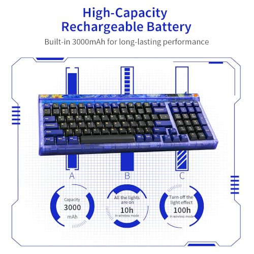 Specification: Newmen GM980 Wireless Mechanical Keyboard,Tri-Mode BT5.0/2.4GHz/USB-C Hot Swappable Custom Keyboard,100 Keys Gasket Gaming Keyboards PBT keycaps Pre-lubed Linear Switch, RGB Backlit(Starry Switch)