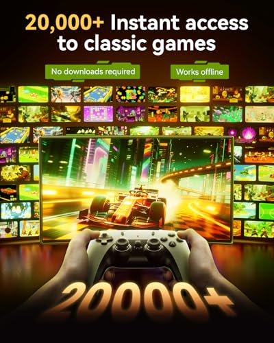 20,000+ Classic Games in Retro gaming Console – Enjoy instant access to a vast library of over 20,000 classic games, pre-loaded on a built-in 64GB TF card. Covering 23 emulators, this retro gaming console requires no downloads or installations—just plug in and play. The extensive collection offers diverse gaming experiences to suit every player’s taste