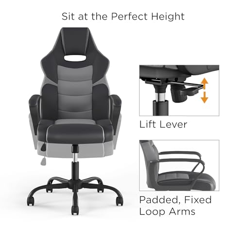Specification: STAPLES Emerge Vector Luxura Faux Leather Gaming Chair, Black & Gray